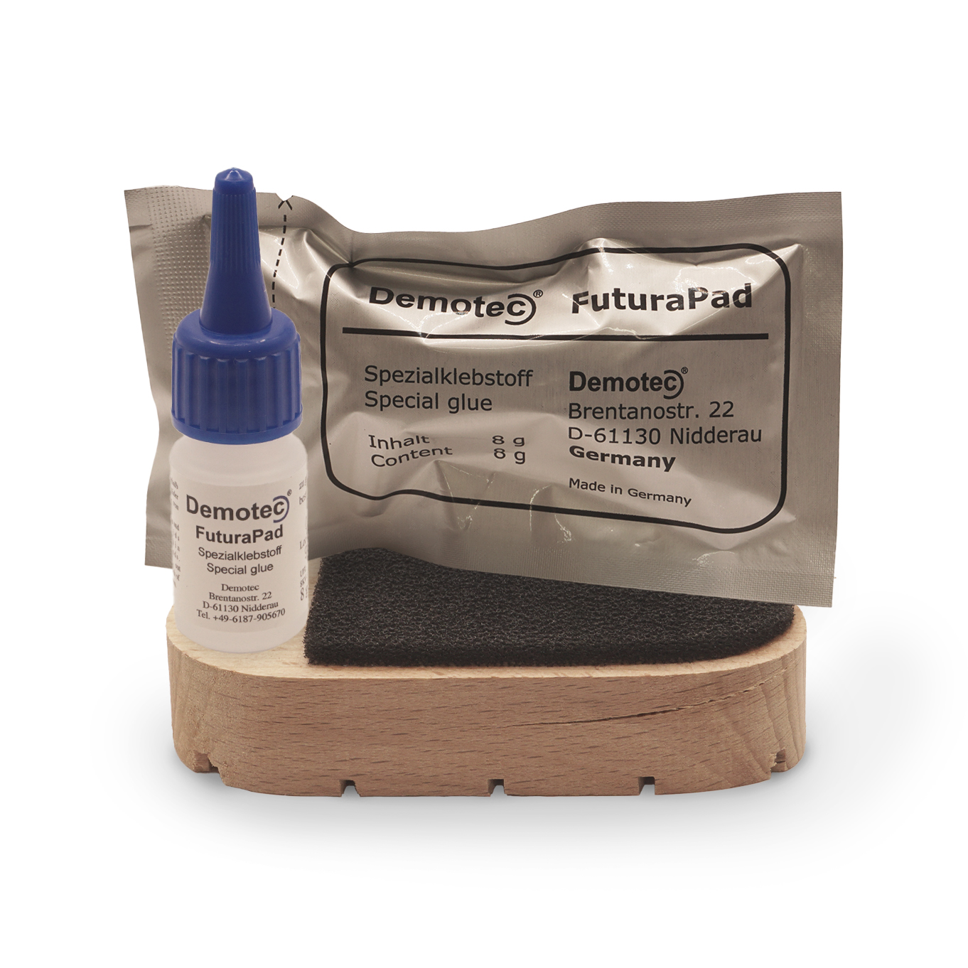 Demotec Futra Pad 10-Pack come with 5 left and 5 right claw blocks each block has a special reactive pad on one side and one pottle of glue per block. You pour the glue onto the reactive black pad and then hold firmly onto the claw until dry. Demotec Futra Pad blocks help remove human error and glue wastage from the process of applying claw blocks.
