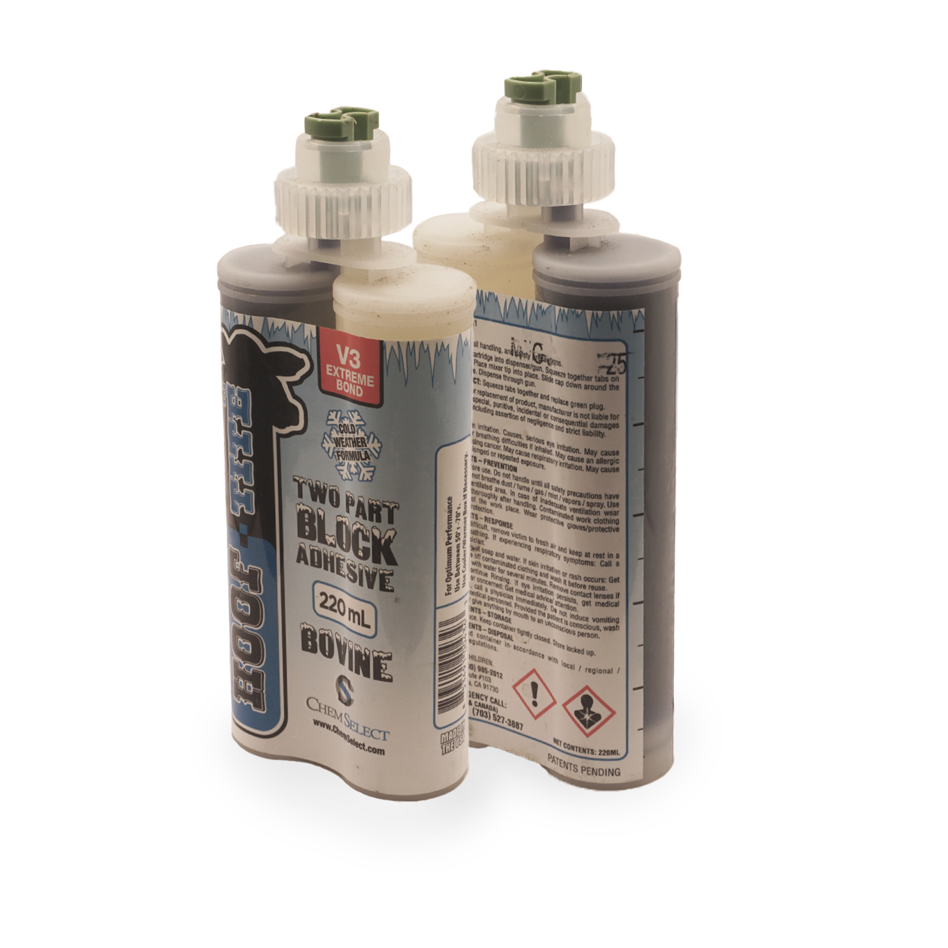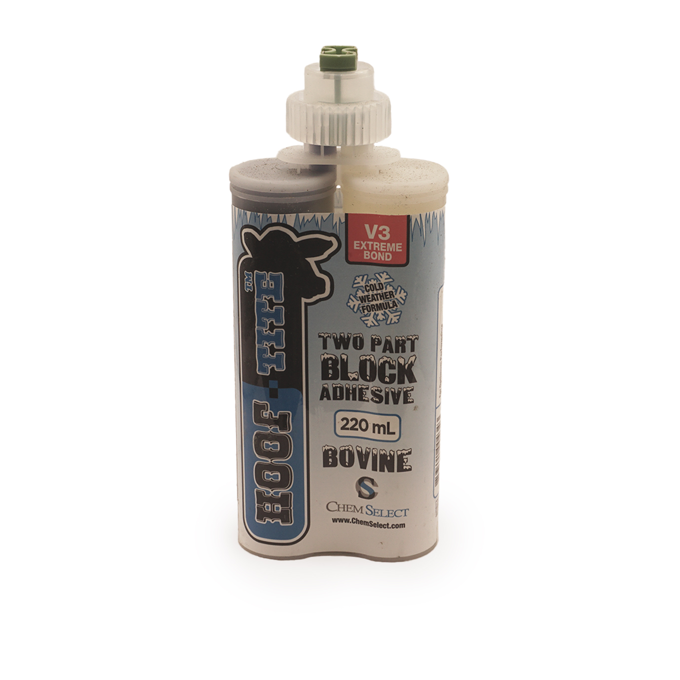 Hoof-Tite Cold Glue is a 220ml 2-componant glue developed by hoof trimmers for hoof trimmer. Hoof-Tite Cold is developed to be used in colder temperatures. The glue starts to set fast with drying time of 2-4mins. You can get 8 to 10 applications per cartridge. Used in conjunction with our glue dispenser gun, wooden claw blocks and mixing tips.