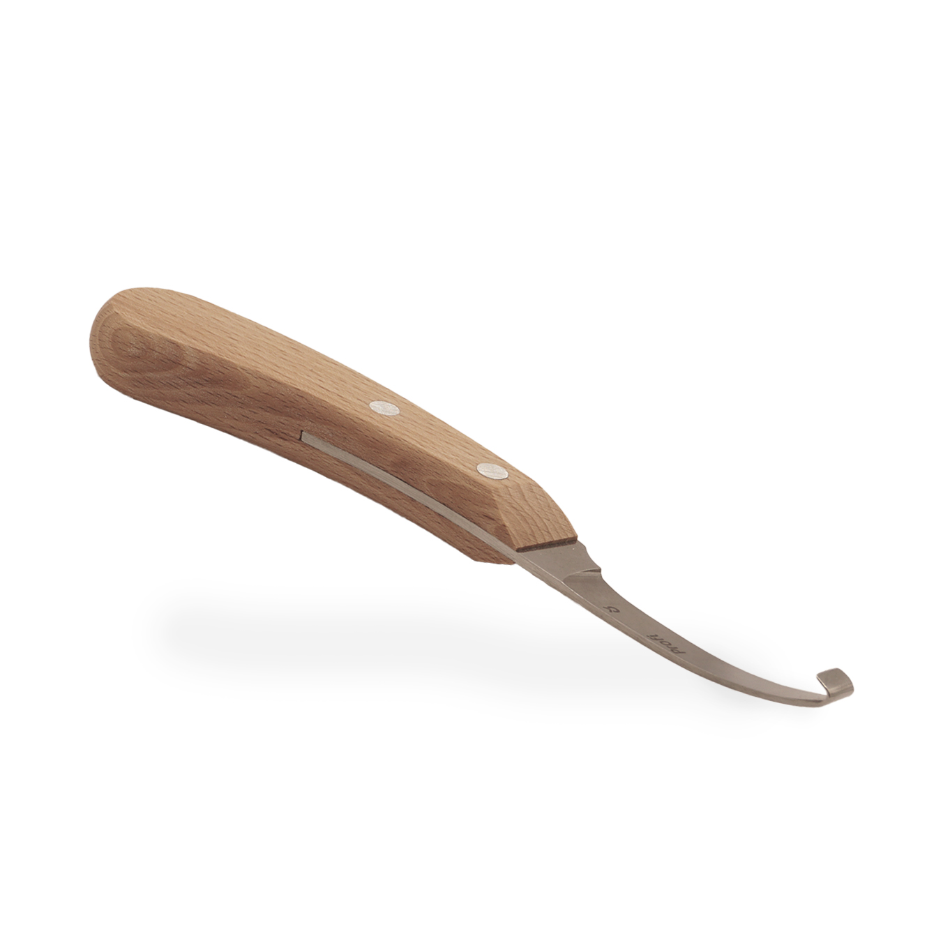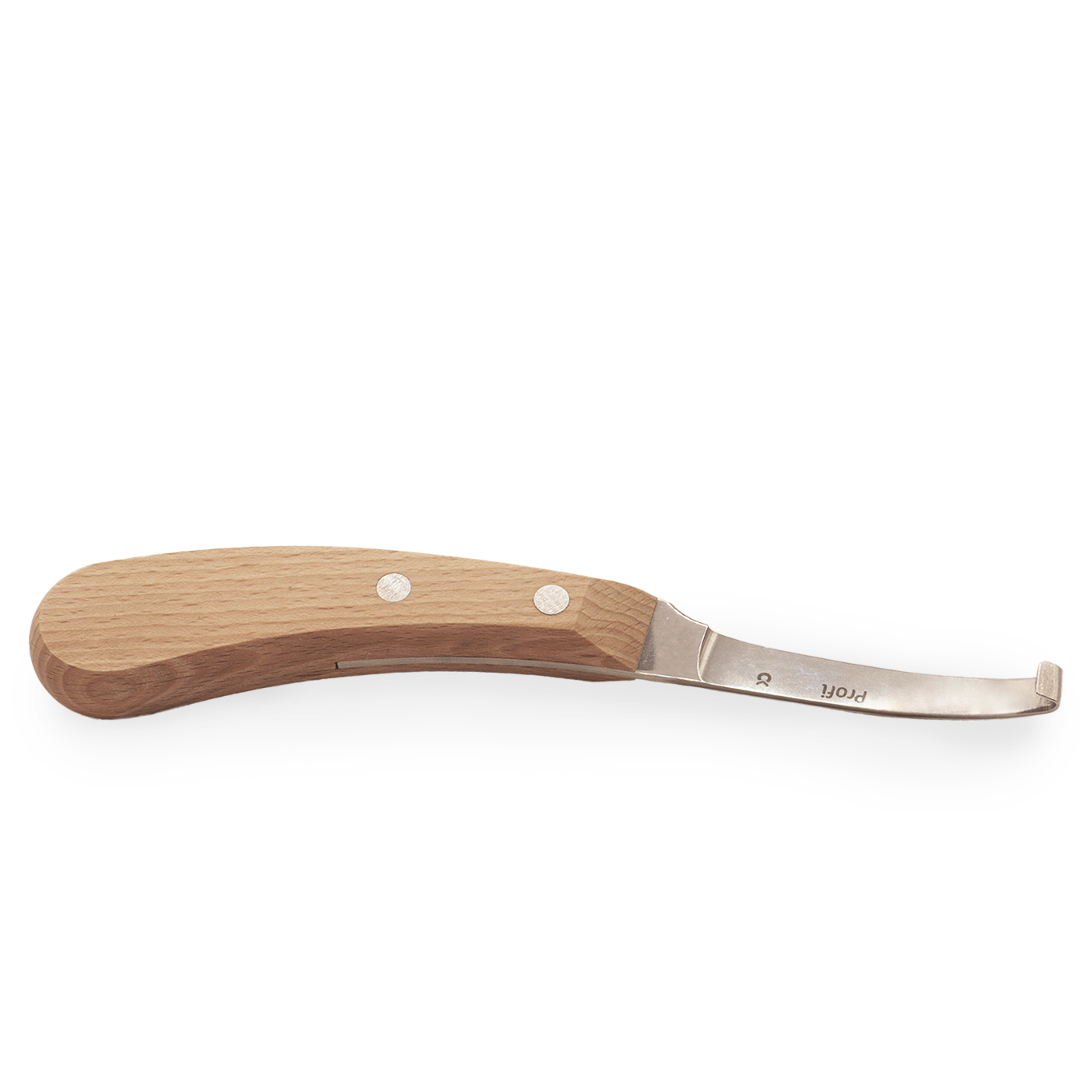 Profi Hoof knifes, available as left-handed or right-handed knives, are sold pre-sharpened. These are the knives I use myself. The blades are made from a stainless-steel alloy with increased chromium and have a water-resistant hardwood handle. These knives are comfortable to use and hold their sharpness very well.