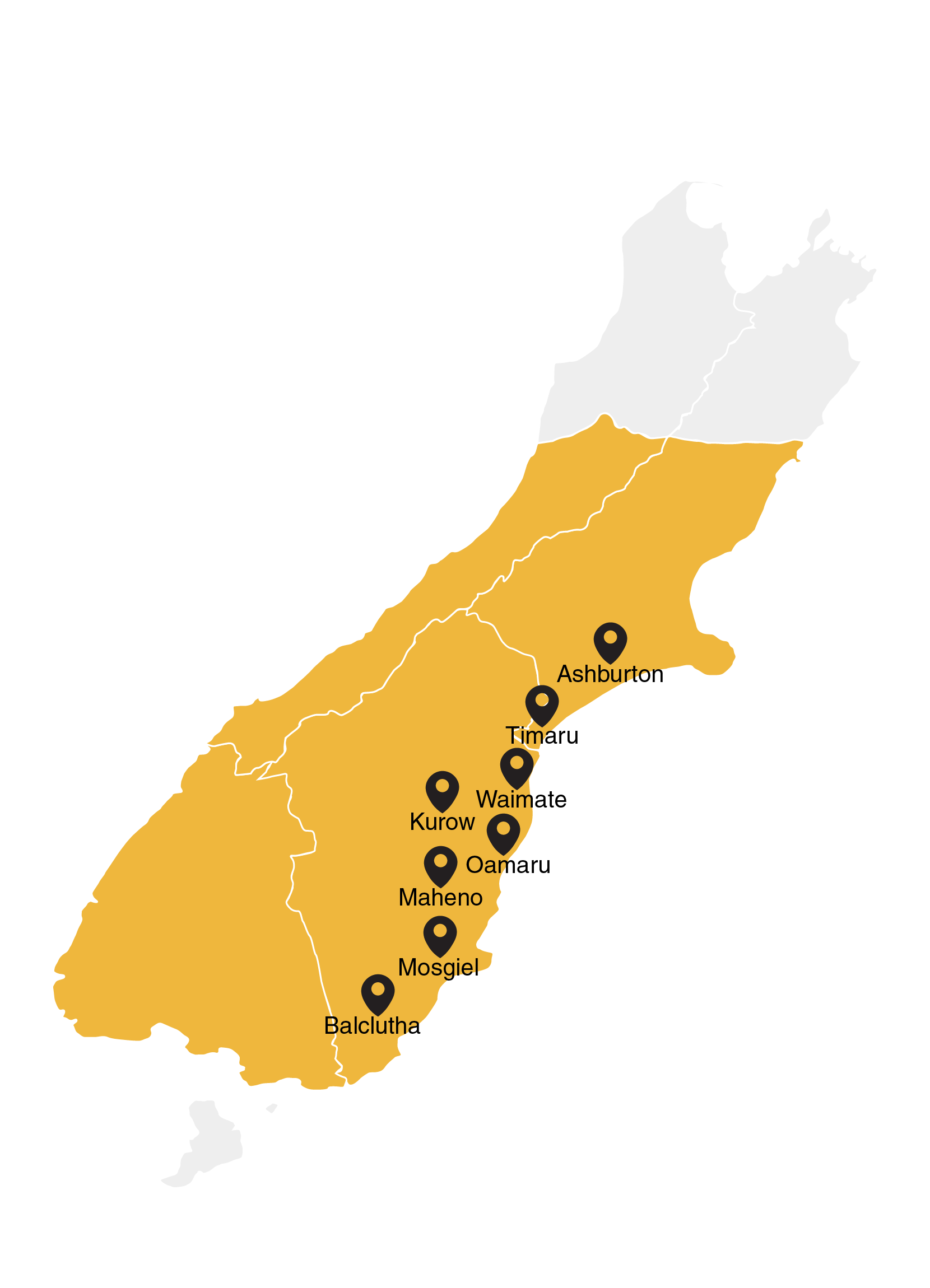 Our regular service area spans from Ashburton to South Otago, with trips to southland and the coast on a semi regular basis. If you’re located outside these areas, simply get in touch- we’ll do our best to accommodate you or recommend a suitable solution.